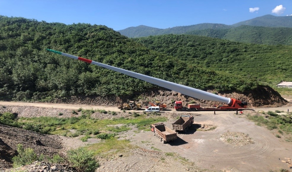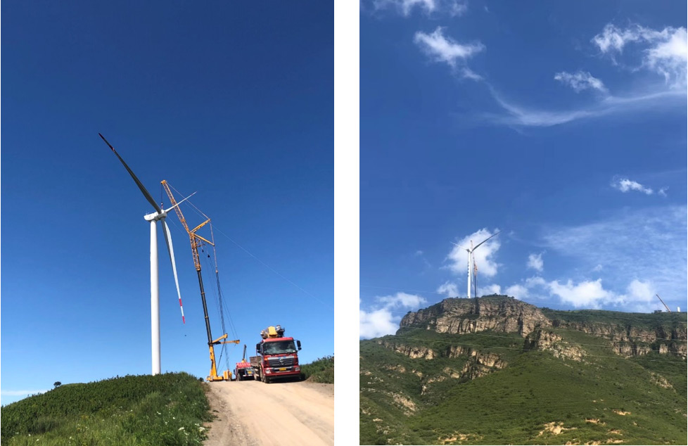 2020年8月4日,清潔能源北京分公司懷南風(fēng)電場一期49.5MW工程首臺風(fēng)力發(fā)電機(jī)組吊裝成功。