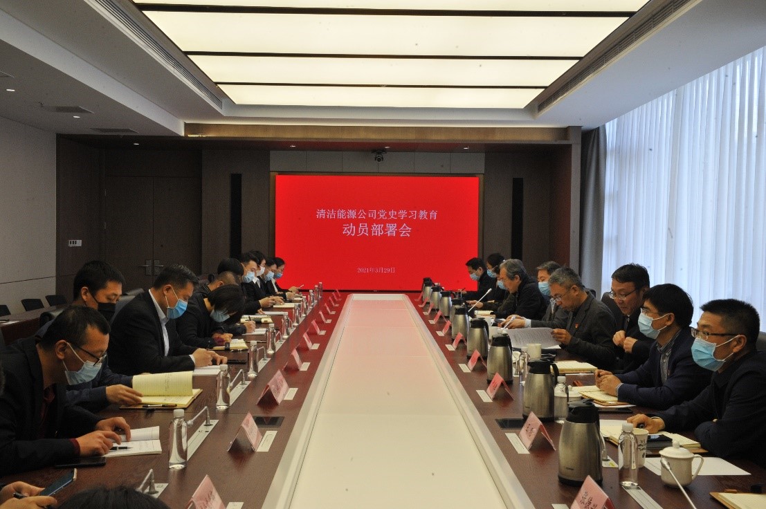2021年3月29日,清潔能源召開黨史學(xué)習(xí)教育動(dòng)員部署會(huì),深入學(xué)習(xí)貫徹習(xí)近平總書記在黨史學(xué)習(xí)教育動(dòng)員大會(huì)上的重要講話精神,貫徹落實(shí)北京市委、市國資委黨委和集團(tuán)黨委有關(guān)部署要求,對(duì)清潔能源系統(tǒng)開展黨史學(xué)習(xí)教育工作進(jìn)行動(dòng)員部署。