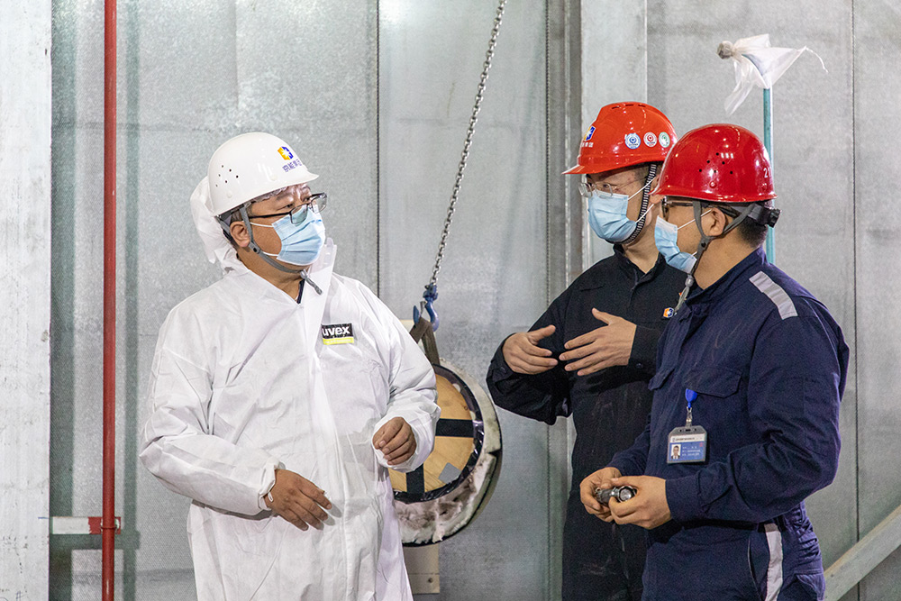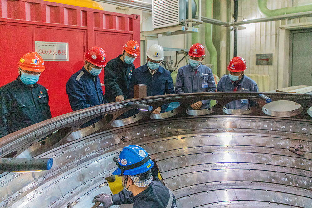 4月13日下午,京能清潔能源黨委副書記、工會(huì)主席厚伯蘢到京西熱電1號(hào)燃機(jī)A級(jí)檢修現(xiàn)場(chǎng)親切慰問(wèn)生產(chǎn)一線職工。清潔能源黨群工作部部長(zhǎng)常立行,京西熱電黨委副書記、紀(jì)委書記、工會(huì)主席趙立群陪同慰問(wèn)。