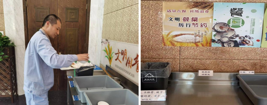 宣傳周期間生活垃圾站、餐廳垃圾投放區(qū)安排垃圾分類指導(dǎo)員,指導(dǎo)員工進(jìn)行垃圾分類。