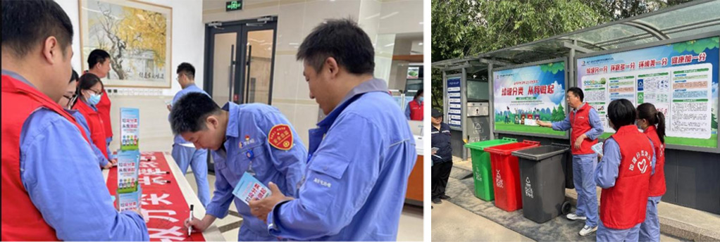 公司組織全體職工開展“我分類、我承諾”活動(dòng),主動(dòng)簽署垃圾分類承諾書,廣大黨員和職工積極參與桶站值守。同時(shí)加強(qiáng)與屬地街道、屬地共建單位橫向交流合作,學(xué)習(xí)先進(jìn)典型項(xiàng)目的良好工作經(jīng)驗(yàn),提升自身垃圾分類工作能力。