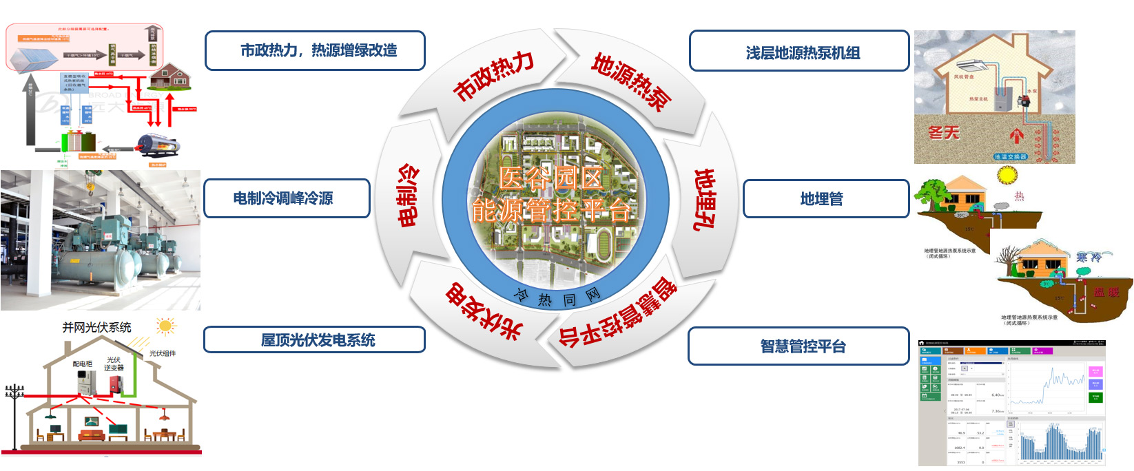 中關(guān)村醫(yī)谷項(xiàng)目將由地源熱泵、電制冷機(jī)組、市政熱力等深度融合的大型多能耦合復(fù)合式能源系統(tǒng)組建而成。通過(guò)能源管控系統(tǒng),優(yōu)先利用地源熱泵等可再生能源,以常規(guī)能源作為補(bǔ)充,實(shí)現(xiàn)多能互補(bǔ)、冷熱同網(wǎng)、按需供能。年供熱量為21.11萬(wàn)GJ,年供冷量達(dá)8236.8萬(wàn)kWh。項(xiàng)目還配備7MW光伏發(fā)電系統(tǒng),預(yù)計(jì)年發(fā)電量達(dá)851萬(wàn)kWh,每年可節(jié)約標(biāo)煤1046噸。形成“清潔能源利用率100%、可再生能源利用率67.5%”的多能互補(bǔ)供能體系,使中關(guān)村科學(xué)城國(guó)際醫(yī)谷園區(qū)成為集“智慧園區(qū)、綠色園區(qū)、低碳園區(qū)”于一體的新型園區(qū)。