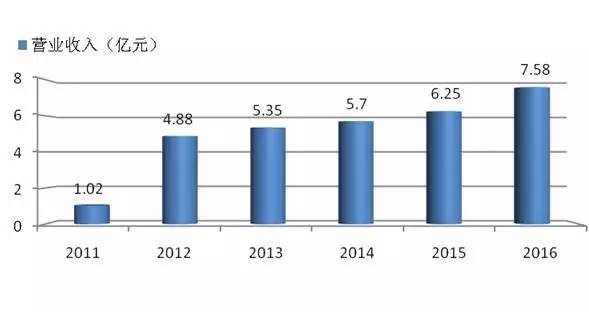 圖8 2011-2016 全球新能源企業(yè)500強中國企業(yè)總營業(yè)收入(億元)