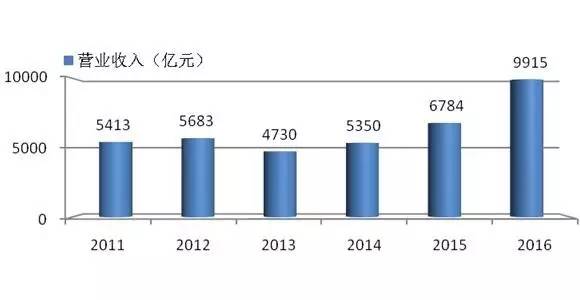 圖2 2011-2016全球新能源企業(yè)500強總營業(yè)收入(萬億元)