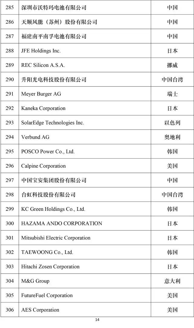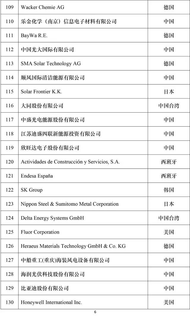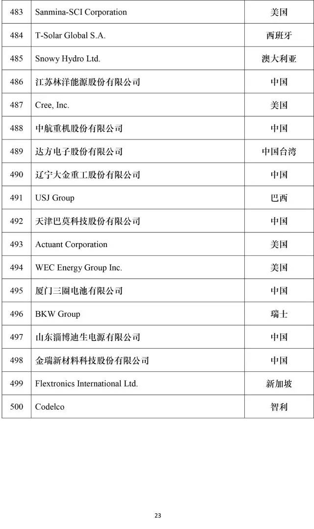 ● 中國(中國大陸及香港、澳門、臺灣)有協(xié)鑫(集團)控股有限公司、新疆金風科技股份有限公司、晶龍實業(yè)集團有限公司、天合光能有限公司、阿特斯陽光電力科技有限公司等193家企業(yè)進入“500強”榜單,比去年(168家)增加27家,占38.6%,居首位;