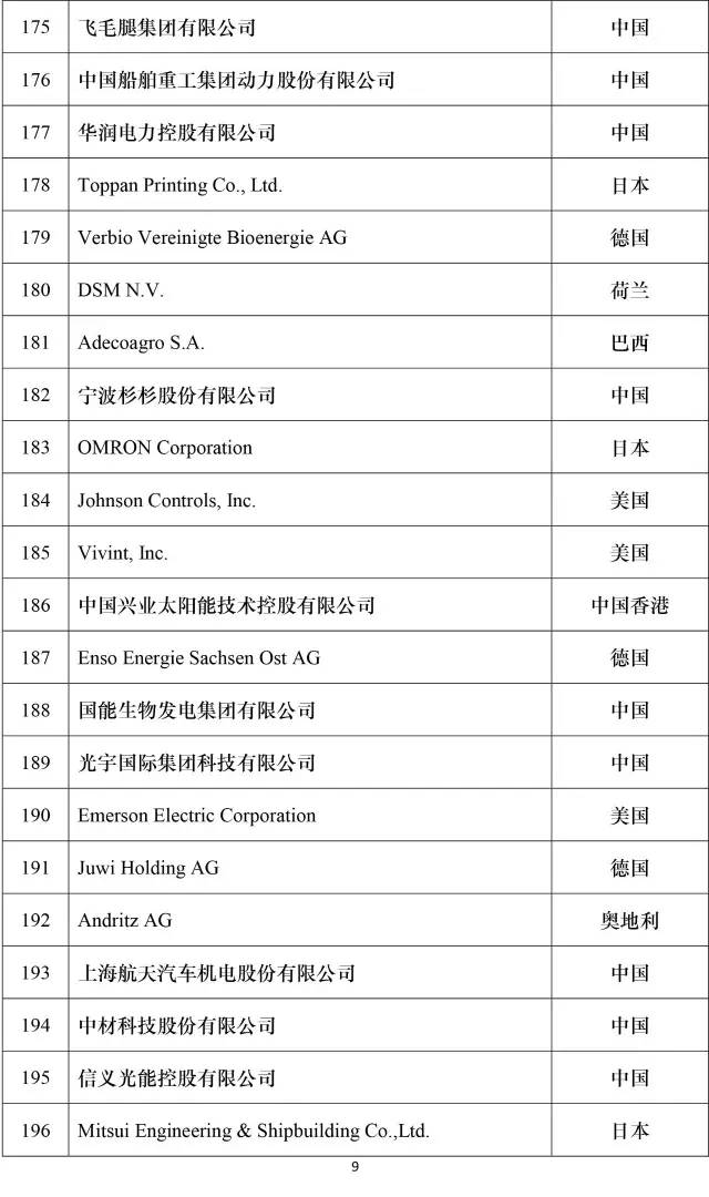 ● 美國有GEEnergy、ArcherDaniels Midland Company 、Dow Corning Corporation、FirstSolar、等65家企業(yè)進入“500強”榜單,比去年(72家)少7家,占13%,位居第二;