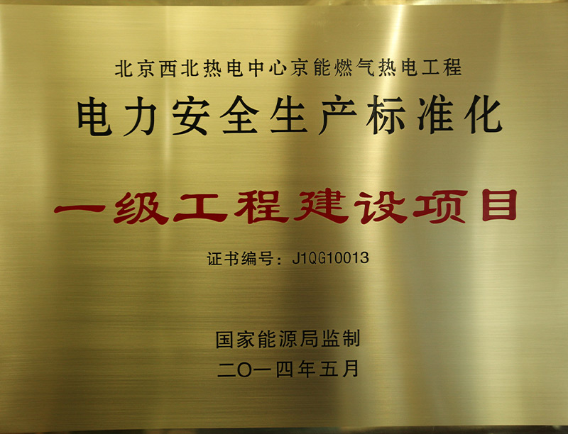 2014年5月,北京京西燃氣熱電有限公司,北京西北熱電中心京能燃氣熱電工程電力安全生產(chǎn)標準化一級工程建設項目
