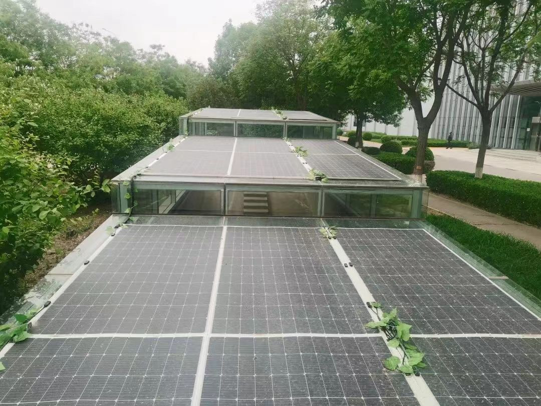 在京西熱電廠內分布式光伏一期項目中,大膽嘗試、勇于創(chuàng)新,在保安崗亭、循環(huán)水排水車間玻璃棚屋頂安裝輕質光伏組件,取得了良好的發(fā)電和裝飾效果。c