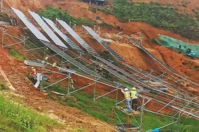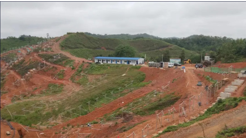 和平縣彭寨鎮(zhèn)長沙村光伏項(xiàng)目屬于山地光伏工程,施工過程又恰逢汛期,天氣陰晴不定,陣雨頻繁,大大增加了施工現(xiàn)場及安全管控難度,特別是受山地地形影響,項(xiàng)目陣區(qū)分散,坡面較陡,使機(jī)械作業(yè)無法大面積開展。