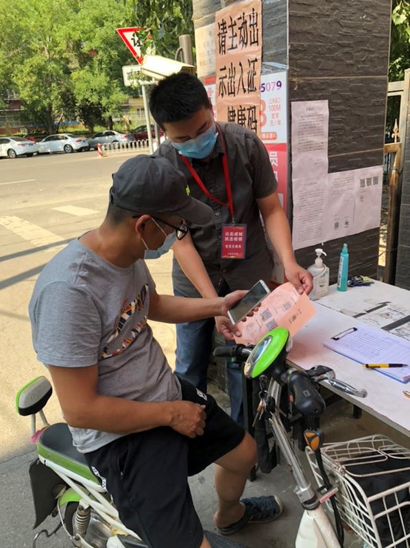 5名黨員干部下沉社區(qū)后,全部編入社區(qū)防控期間值班安排,迅速轉(zhuǎn)入戰(zhàn)斗角色,同社區(qū)居委會(huì)干部、志愿者們一同站崗值守,開展宣傳引導(dǎo)和入戶排查。他們第一時(shí)間熟悉值守崗位基本情況,并利用企業(yè)管理工作經(jīng)驗(yàn),及時(shí)向社區(qū)提出排查過程留痕、訪客登記信息表更新等合理化建議。短短兩天時(shí)間,他們?nèi)ε浜仙鐓^(qū)居委會(huì)干部開展敲門行動(dòng),累計(jì)入戶600余戶,排查直接到過新發(fā)地市場居民12人。