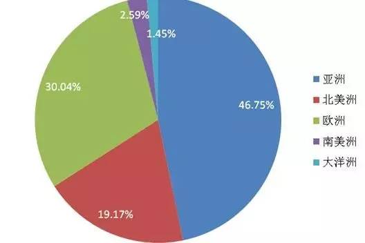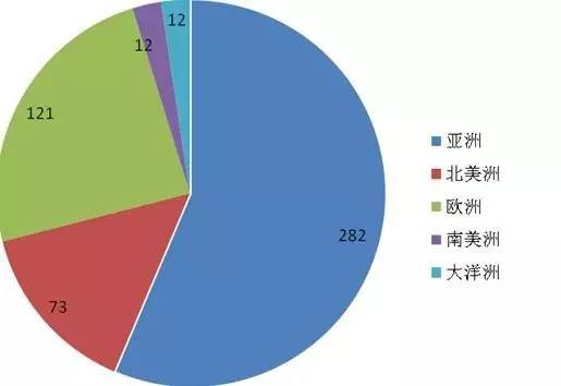 圖6 2016全球新能源企業(yè)500強洲際分布