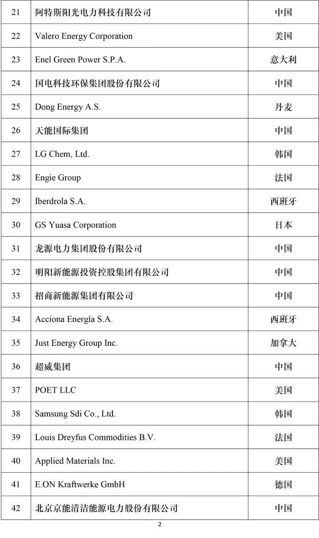 表1 2016全球新能源企業(yè)500強中排名前50的中國企業(yè)名單