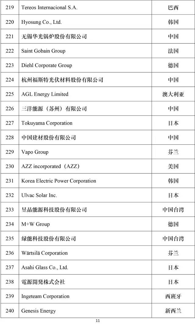 ● 中國(中國大陸及香港、澳門、臺灣)有協(xié)鑫(集團)控股有限公司、新疆金風科技股份有限公司、晶龍實業(yè)集團有限公司、天合光能有限公司、阿特斯陽光電力科技有限公司等193家企業(yè)進入“500強”榜單,比去年(168家)增加27家,占38.6%,居首位;