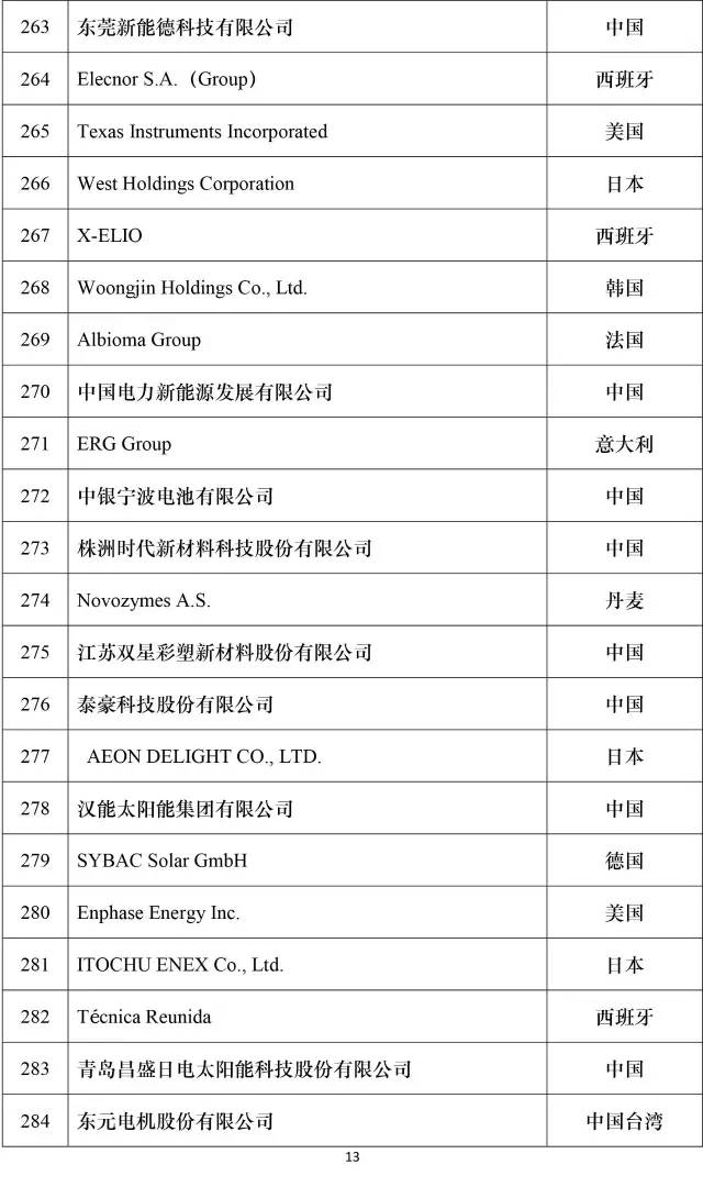 ● 美國有GEEnergy、ArcherDaniels Midland Company 、Dow Corning Corporation、FirstSolar、等65家企業(yè)進入“500強”榜單,比去年(72家)少7家,占13%,位居第二;