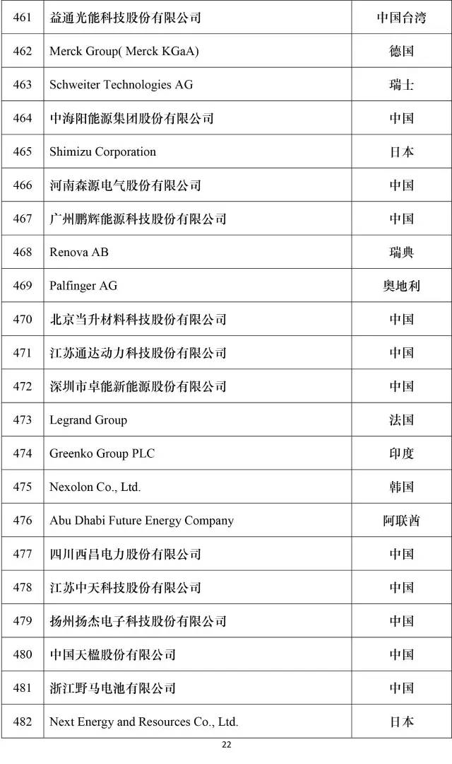 ● 日本則有Panasonic Corporation、GS Yuasa Corporation、SharpCorporation、Toshiba Corporation等46家企業(yè)進入“500強”榜單,比去年(51家)少5家,占9.2%,排名第三;